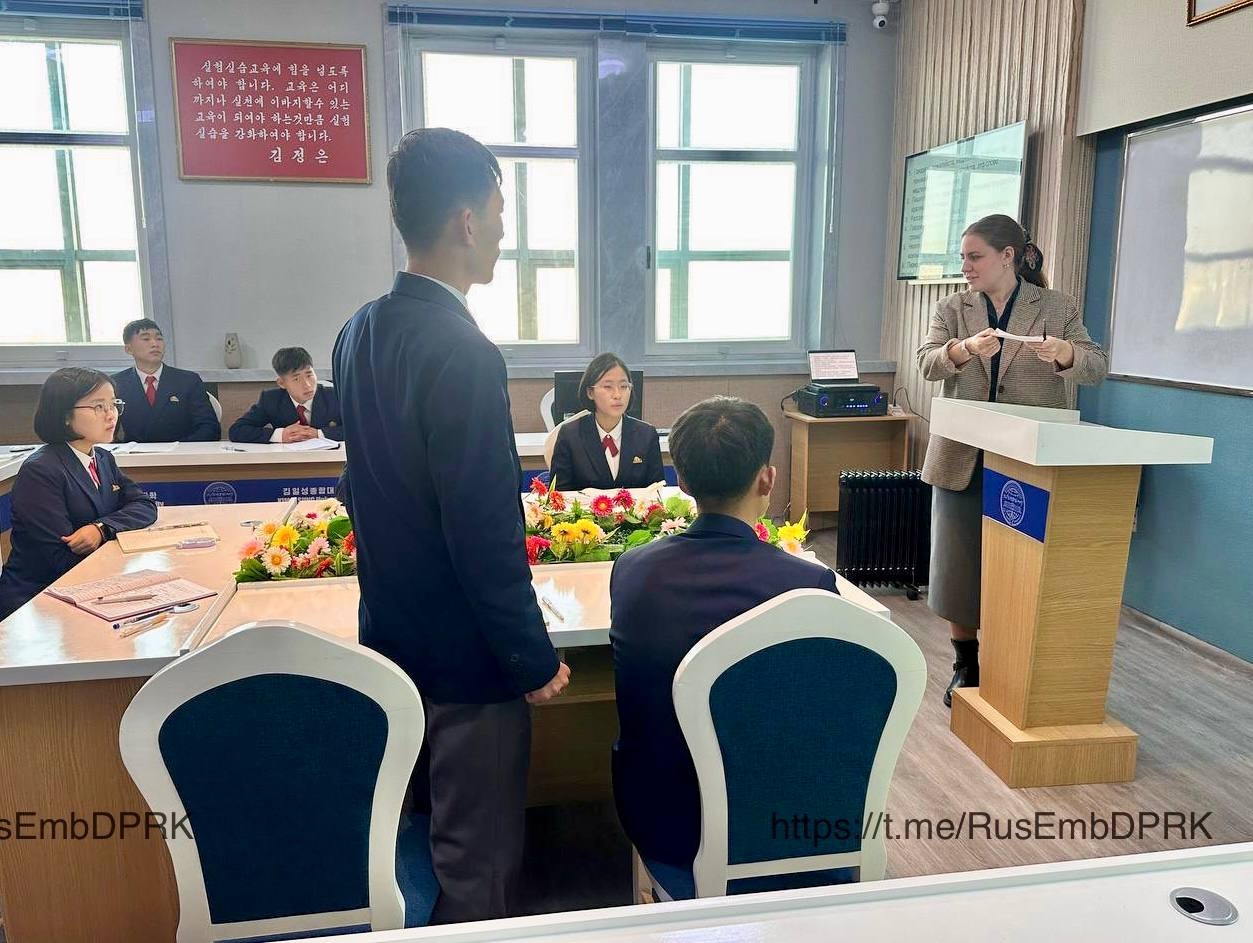 Старший преподаватель Анастасия Чекалина занимается со старшекурсниками Университета имени Ким Ир Сена. Специально для них преподаватель Института Пушкина организует курсы по страноведению, на которых студенты смотрят русские фильмы, выполняют творческие задания, изучают и анализируют современные русскоязычные медиатексты. За месяц эти занятия посетили более 120 человек.