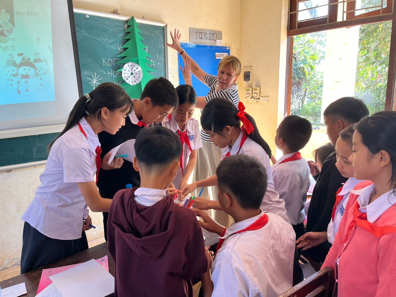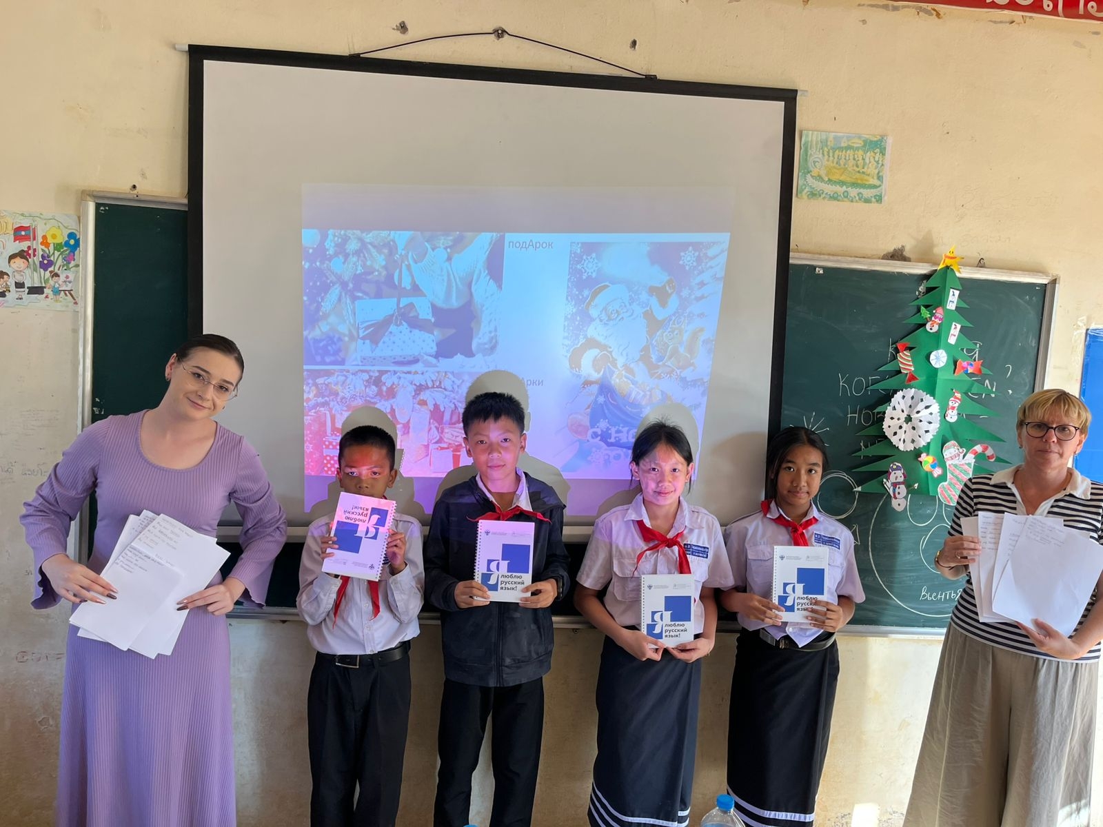 Для учащихся 7 класса школы для одаренных детей Пхонсаванх преподаватели Института Пушкина организовали праздничный урок «Скоро будет Новый год!». Ребята узнали о традициях празднования Нового года в России, сделали своими руками новогодние игрушки и написали письмо Деду Морозу.