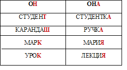 В русском языке неодушевлённые существительные так же, как одушевлённые, имеют грамматический признак рода. Существительные мужского рода заканчиваются на согласный и заменяются местоимением «ОН». Существительные женского рода имеют окончания «-а» или «-я». Они заменяются местоимением «ОНА».